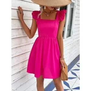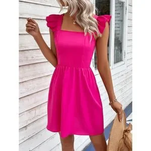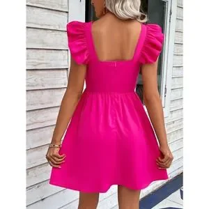 Square Neck Zip Back Ruffle Trim Dress boho kelly green