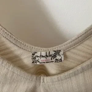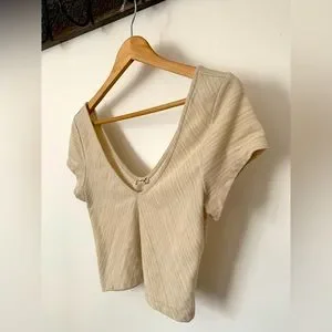 This creamy colored crop shirt with a low V in the front and back of the shirt. In great pre-owned condition, my closet to bundle and save!