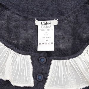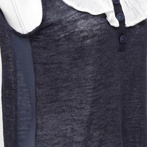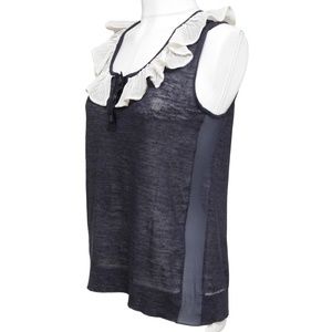 CHLOE Sleeveless Top Shirt Sleeveless Navy Ivory Ruffle Henley XS 2007