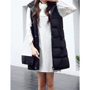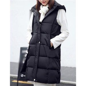 Women's Long Puffer Vest Sleeveless Coat Quilted Vest Jacket with Hood