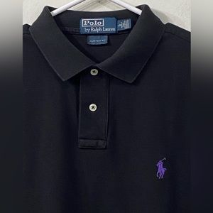 Ralph Lauren Polo Shirt Black Cotton with Lavender Pony size L