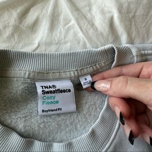 Aritzia TNA Cozy Fleece Boyfriend Boxy Cropped Sweatshirt in Mirror Blue