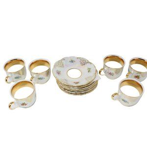 Vintage Starorolsky Moritz Zdekauer Czech Republic Iridescent Gold Hand Painted Porcelain Tea Cup And Saucer 12PC Set