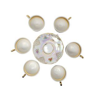Moritz Zdekauer Czech Republic Iridescent Porcelain Tea Cup And Saucer 12PC Set
