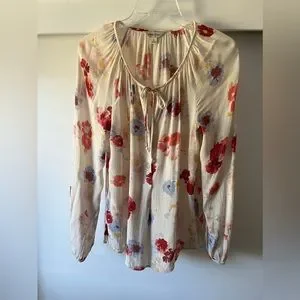Lucky Brand Floral Lightweight Peasant Blouse Size S