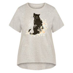 NWT Avenue Womens Cotton Cat Print High Low Top Grey 30/32 PLUS SIZE