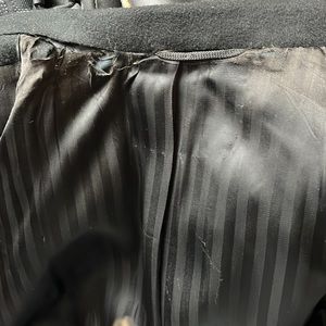 Vintage cashmere black overcoat . Banks Philadelphia Botany 500 tailored by Daroff 44reg. Excellent condition except for some wear in lining by neck as pictured. Detailed cuff trim also oof wok on velvet lined pockets and pockets in pockets . Pit to pit laid flat 28” and length 42”