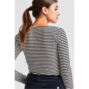🔆 The Brixton Lombard L/S Knit is a slim-fit long-sleeve top made in 230-gram cotton/spandex yarn-dyed stripe jersey. It features a square neckline, fitted sleeve, and woven Brixton labels.