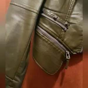 L&L Leisarely Life Collection Olive green Studded lined vegan leather jacket SzM