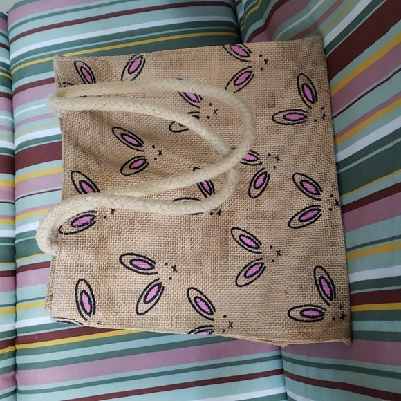 *EUC* Burlap Bunny Tote Bag