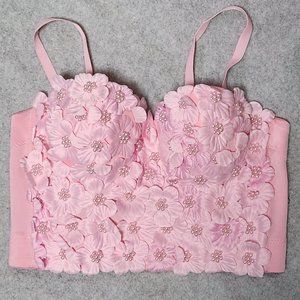 Y2K Pink Floral and Pearl Beaded Crop Cami Corsette Top - NEW