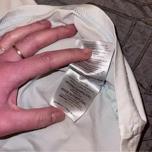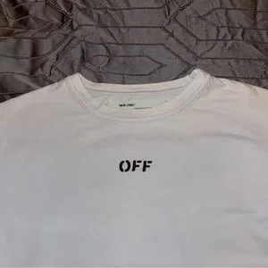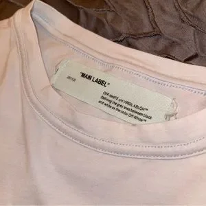 XS off white Tshirt. Only defect is a small stain to the collar of the shirt and some freeing from the sides of the tag from washing