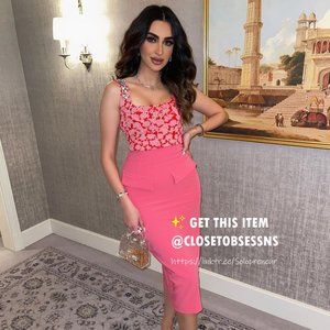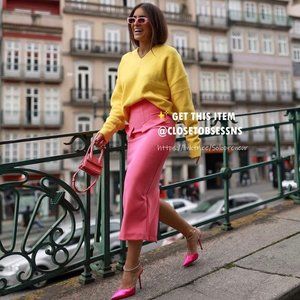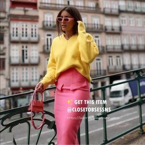 Pink high waist midi skirt with front flaps. Zip closure. From ZARA, in size M and L. New with tags. Sold out in stores.