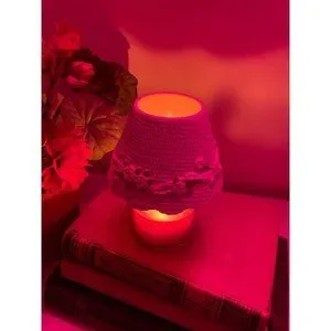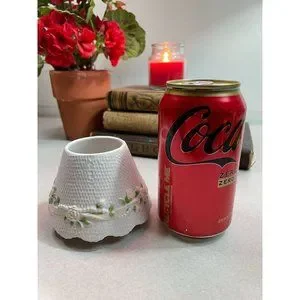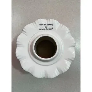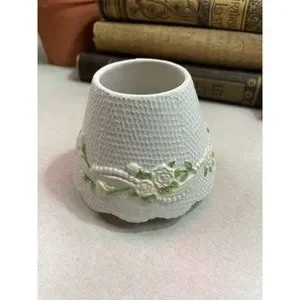 Description: Yankee Candle small candle shade. Resembles a lamp shade draped with lace, roses and pearls. No chips or cracks.