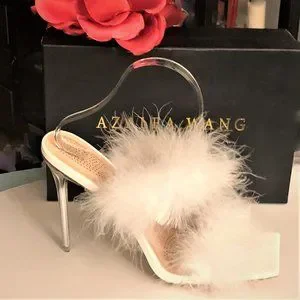 AZALEA WANG White Fluffy Slip-on Open Toe Clear Stiletto Heels NEW in Box Size 9