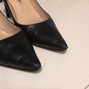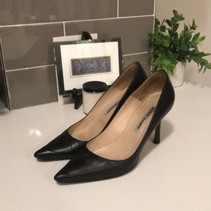 Loved it, but ready to rotate for something new. Vintage classic black leather Manolo BB pumps. Authentic. Professionally applied toppy. Some scuffs and scratches. See pictures /video. Fit size 8.5-9 best. Worn out once but a bit too loose for me. Heel 3.5”
