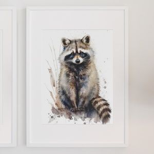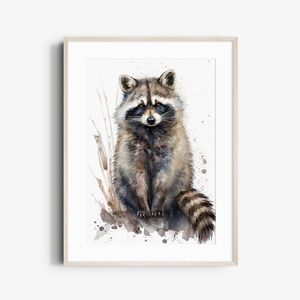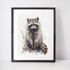 Cute Raccoon Watercolor Wall Art Illustration Print Poster Card Unframed