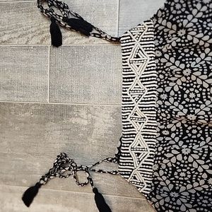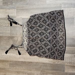 American Eagle brand cropped tank top in very good pre owned condition. worn once. size small measurements are 16 inches across the chest and 19 inches in length. shoulder straps tie with tassels