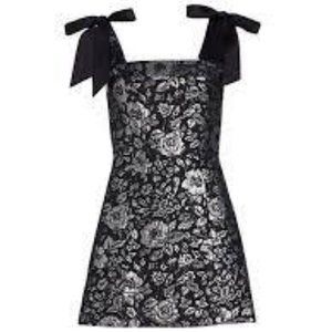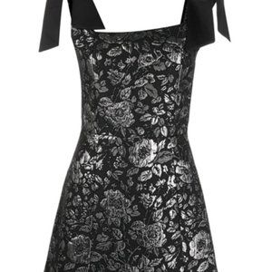The Maryann minidress from Alice + Olivia is crafted of metallic floral jacquard in an A-line silhouette. A square neck and square back with tie-shoulder details define this
