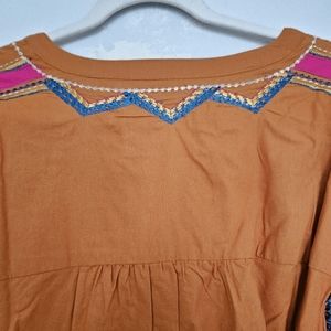 In spellbinding hues of marigold and pink, this embroidered tunic is sure to make heads turn - style it with slides for a backyard barbecue, or elevate the look with strappy sandals and wrists full of bangles.