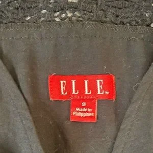 Super cute, fun, stylish black summer spring dress from ELLE. Features black sheer lace detail on top of dress with cap sleeves and v-neck. Ruffles along the bottom of the dress and tie waist. Women’s Size Small. Measures approximately 16.5 inches laying flat from armpit to armpit and 34 inches long from shoulder to bottom hem. Gently used, in good condition.
