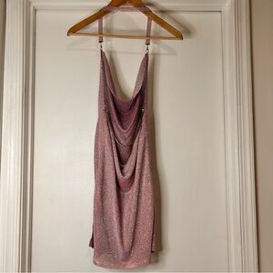 Custom Made Halter Dress With Pink Shimmering Rhinestones - Size 2