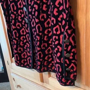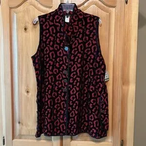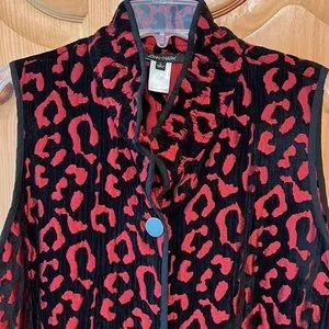 NWT John Mark Black Velvet Red Leopard Button Vest L