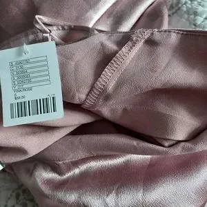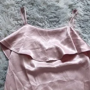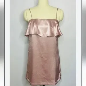 This little pink metallic dress is ready to party! Slip dress design. Spaghetti straps. Straps are adjustable. Invisible zipper. Large ruffle top. Satin like fabric. Very silky thick. Fabric has very minimal stretch. This dress is perfect for a party, bachelorette, date night, or cocktail party. Reminds me of Romy and Michelle’s HS reunion. Total 90’s vibes!