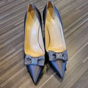 Kate Spade Leena Satin Heel Pumps with Glitter on Bow and Block Heel.