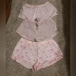 Like new without tags. Set of 3 Victorias secret, womens size small pajama shorts. Soft cotton fabric. Pink colored patterns.