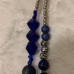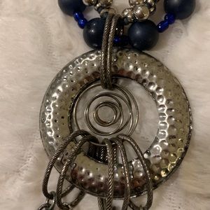 Double strand blue beads medallion statement necklace