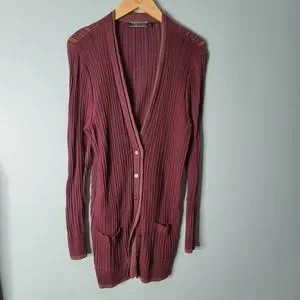 Peruvian Connection Red Open Airy Knit Cardigan Size L