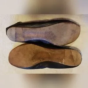 Country Road black ballet flats. Made in Italy. Vero Cuoio, which means the sole of the shoe is made of the highest quality hard-wearing leather. Upper and insole are leather too. Have had a bit of wear but as they're leather they only get better. EU size 40 so around a size 9, but because of elastic at back can be worn by 8-8.5.