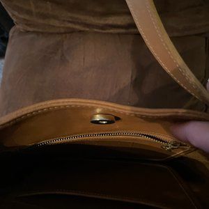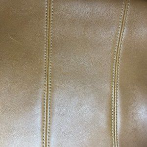 This bag is a classic 90s mid-sized shoulder bag. Vintage Coach Tribeca shopper bag circa the 90s! It has gorgeous lines & Tan color, the leather is soft and has some ink pen markings inside and out, scratches on the outside of the bag. Coach creed stamped on the interior zippered pocket, additional slip pocket also inside. Coach's glove-tanned leather was meant to last a lifetime and this bag is ready to live its second life! Made in the US in January ‘98, stamped with serial #A8D-9083