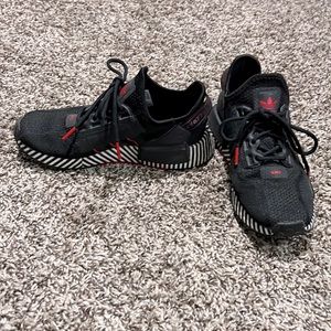 Adidas NMD Ri.V2 Boys Size 4 Womens 5.5 Black Red Running Sneaker Shoes FY2107