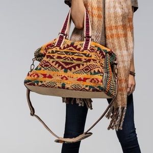 Bohemian, southwestern, southwest, hippie, Daisy Jones and the Six vibes, retro, cowgirl, rustic, durable, well made, well constructed, great storage, versatile, winter, spring, summer, fall, boho chic, beach, vacation, travel, weekender bag, getaway, date, Colorado, yoga, gym bag, versatile, stripes, geometric patterns, Navajo patterns