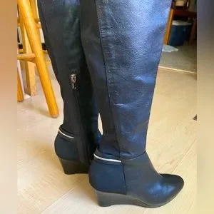 Pre-Owned Ladies Calvin Klein Knee Black Boots Olena Style Size 8M