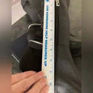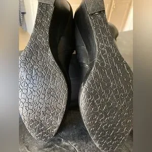 These boots have a 3”wedge heel has leather in the front and elastic on the back for easy and comfortable fit . The boots have a 10 “silver zipper and a silver band on the back around back of the heel. A very classy boot that is definitely a hard to come by . This vintage boot has a round toe and very unique style. Please see attached photos for better descriptions and measurements