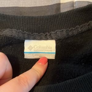 Size Large but definitely a smaller large, color: black with grey writing, Columbia logo also on upper left sleeve, washed but never worn, EUC!