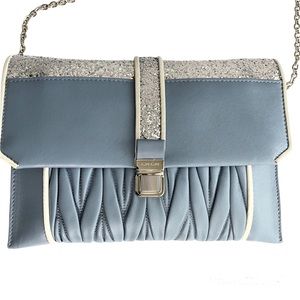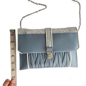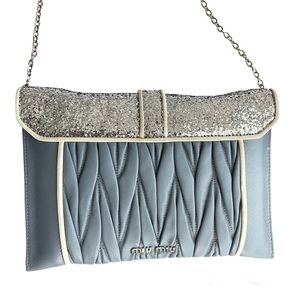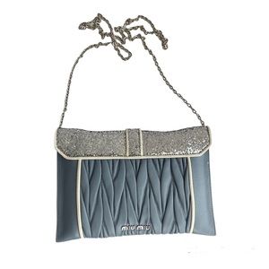 Miu Miu Light Blue & Silver Leather Crossbody Bag Matelasse Clutch Madras Chain