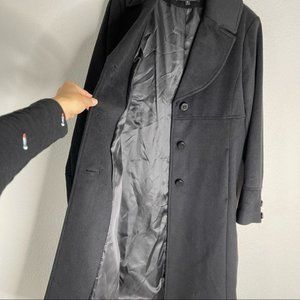 Jones New York Woman's Black Notch Collar Wool Coat Single Breasted Long Size 8