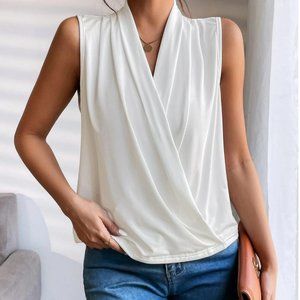 White Ruched Wrap Tank Top
