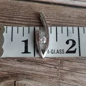 14KT white gold diamond solitare pendant. A single round shaped diamond which is approximately a .33 stone with a tension setting. The diamond is very clear. No inclusions to the naked eye and looking through my Jewelers' loupe, the inclusions are extremely minimal and the color is a nice white without any yellow.