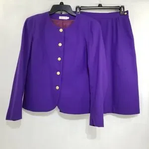 Vintage Gregor Wool Purple Skirt Suit Blazer Jacket 8 Lined