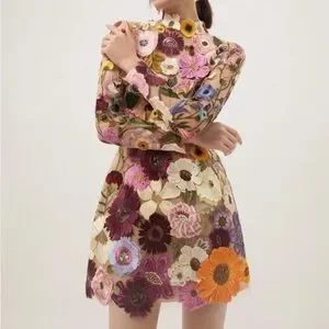Embroidered Flowers Bell Skirt Mini Dress, Designed With Luxury in Mind…