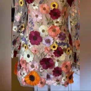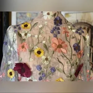 This is a handmade item with raw edge finish cuts at bottom, back and throughout. Some light Freying In is natural and does not take away from the beauty or quality of the dress. It’s Embroidered Flowers and if one or two loose threads are present, they can be cut if needed🌺