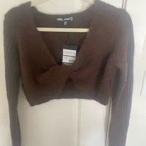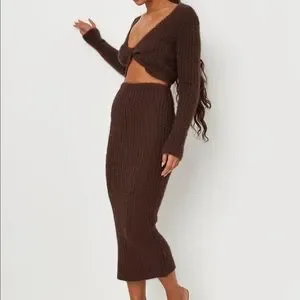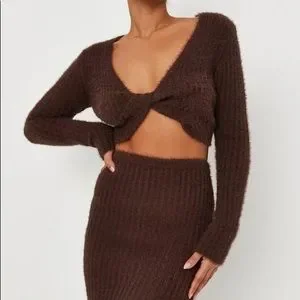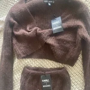 CARLI BYBEL X MISSGUIDED CHOCOLATE CO ORD FLUFFY KNIT SET