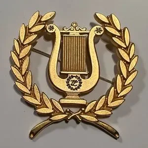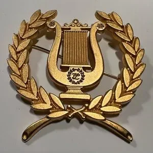 Original couture Laurel & Lyre Brooch from Karl Lagerfeld Bijoux c.1988 Made in Providence RI 24kt gold Matte plating. One owner.