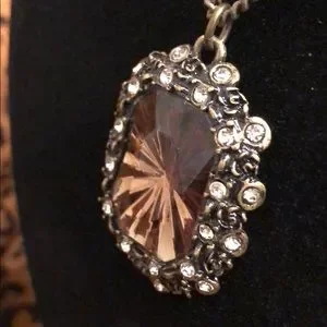 NWT Stunning Brown starburst gemstone with rose encrusted filigree & rhinestones. Bronzetone necklace.