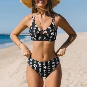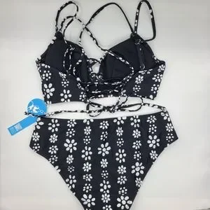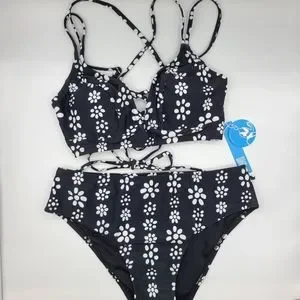NWT Black and White Floral Print Strappy Midrise Cupshe Bikini